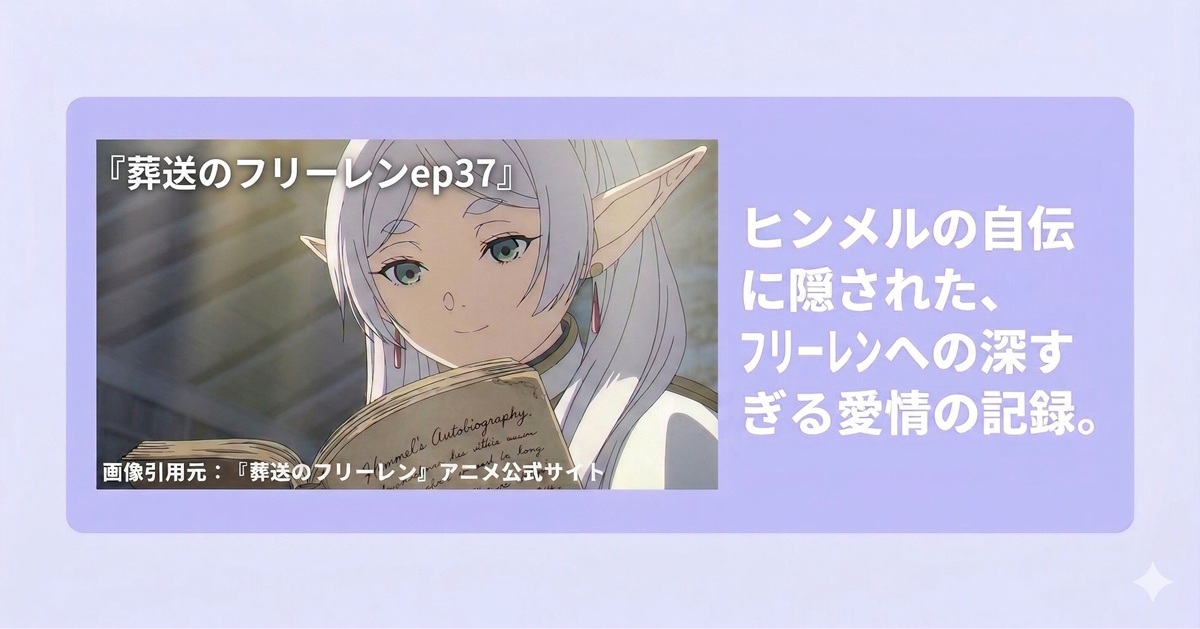 次回の放送までに、見逃し配信でこの第37話をもう一度見返し、フリーレンが一瞬見せた表情の機微や、ヒンメルの自伝のディテールを確認してみてはいかがでしょうか?