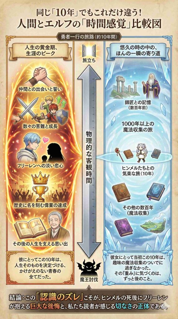 フリーレンにとっての「10年」は、人間にとっての数ヶ月、あるいは数週間に相当する感覚かもしれません。